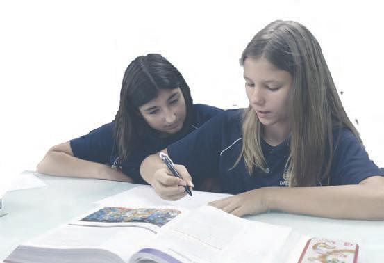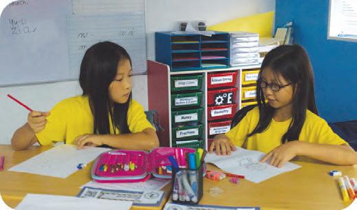 Pointingatthetextbook, YeonsooKim(11)helpsJaqiLyu (7)withherhomeworkduringa peertutoringsessioninthe StudentCenter.Kimandothers volunteeredinthePeerTutoring programtohelplowergrade studentswiththeirchallenging homework.