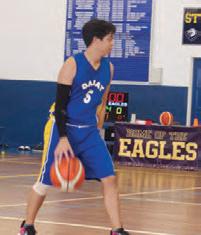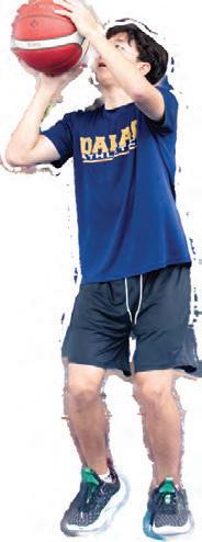 Holdinghisbasketballwhile lookingforawindowto shoot,JunLee(7)dribbles hisball.Manymiddle schoolersoftenbeseen rightafterschool,underthe basketballhoopsbesidethe CASTLE,enjoyingapickup game.