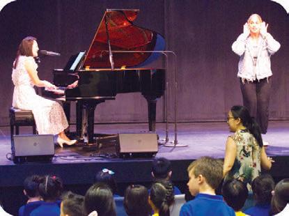 Chillingonthegrand staircase,MaxGohan (7),KatieYang(6), RennesYeoh,and KaitlynLoke(6)are enjoyingeachothers company.Duringlunch, studentswerenot confinedtothe cafeteriafortheentire block,butcouldgoto otherplacesoncampus toenjoytheirfree period.