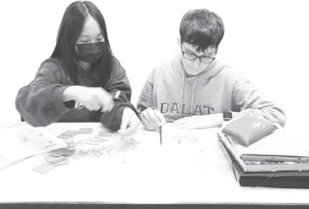 Demonstratinginthenotebook, JonathanPark(11)writesdownthe formulaforIssacElliot(4)tointerpret andunderstand.Alongwithotherhigh schoolstudents,heparticipatedin peertutoringsessionshostedinthe StudentCenter.