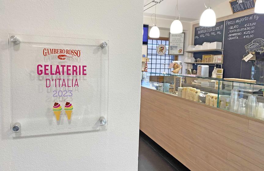 Gambero Rosso recognized the Gelateria 100% Naturale as one of the best in Italy, awarding it the Due Coni prize.