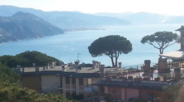 Appartamento in posizione dominante a cavallo tra Rapallo e Zoagli con bella vista mare. Composto da ingresso con corridoio, cucina abitabile, ampia camera matrimoniale, soggiorno, bagno finestrato e rip.
