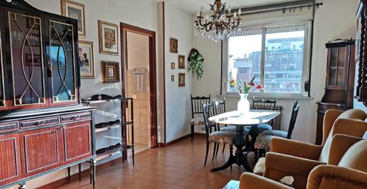Appartamento ristrutturato con ampia superficie 105 mq. c.a.: ingresso in corridoio, grande soggiorno con piccolo studio, cucina abitabile, doppi servizi, due camere, grande dispensa e tre balconi.