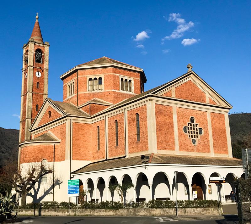 realizzazione data dall’uso di pietra calcarea locale in conci sovrapposti. Madonna della Guardia, ai confini del Borgo, è un santuario, immenso e neoromanico, a croce latina e arieggiato dal porticato esterno. Titola la cittadina della sede della parrocchia omonima, diocesi della SpeziaSarzana-Brugnato. A fine agosto partono i festeggiamenti mariani, seguiti da processione e pesca di beneficienza.