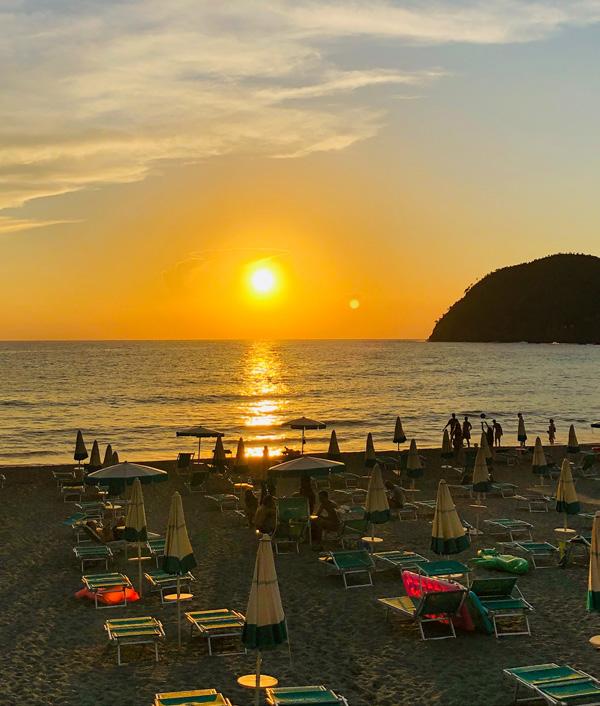 The valley in LEVANTO is in fact as an entry gate to and from the Cinque Terre. Before or after the moorings in Monterosso al Mare, a natural bay stretches creating wide sandy and pebble beaches, from Punta Mesco to Punta Levanto, the so called Baia di Levanto. This slice of heaven, is shaped by terraces that cover the valley towards the big beach, we must say that it has changed in time, particularly after WWII, thanks to an economic growth, yet keeping its classical middle age village look, with its old and new part and the usual conurbation around the main church of Saint Andrea, that has the typical facade with alternated stripes, and the narrow streets such as Via dei Forni and Via Garibaldi, where tourists can find the oldest shops and the best villas; it has become an appreciated beach resort, so dear to people from Milan and Emilia Romagna. Many are the cultural initiatives: a good cuisine represented by focaccerie, restaurants, bistrots and hotels, its pedestrian and