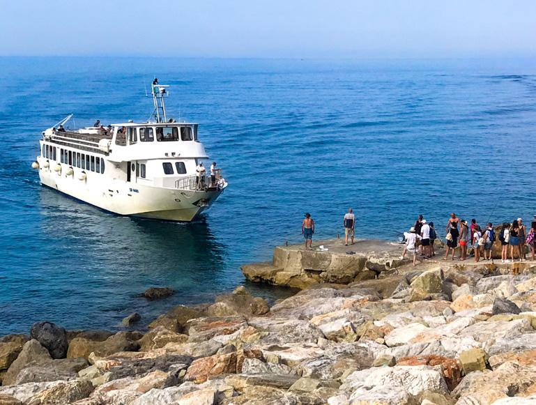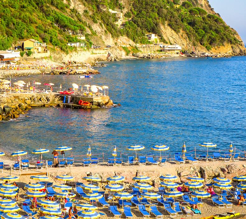 envahissants, et qui, à bien y regarder, forment une étreinte qui va presque jusqu’à toucher Portofino. La palette de couleurs de dame Nature au Salto della Lepre (Saut du Lièvre) est inoubliable, un panorama qui représente à lui seul une autre étape obligatoire sur le sentier entre Bonassola et Framura. La culture touristique de cette deuxième bourgade qui fait partie de la province de La Spezia est centrée sur la baignade, mais tire profit tout d’abord de la présence de nombreux bâtiments historiques ou de grande valeur architecturale. Et nous voici arrivés sur la pointe des pieds, la route très fréquentée du littoral étant loin, sur la commune étendue et à l’air vaguement impressionniste de FRAMURA. Pas si vaguement que ça en fin de compte : par les chemins de montagne accidentés et caillouteux (mais toutefois praticables et tous faisant partie du réseau du Club Alpin Italien) on arrive à un centre historique avec des façades de maisons ligures aux couleurs gitanes qui se jettent dans une mer aux reflets scintillants, dans une ambiance aux allures «pirate» avec la tour de guet carolingienne et les bateaux mis en cale sèche, et dont seulement un peintre pourrait vraiment connaître les teintes exactes. Les rouges, les rose pastel, les ocres des murs et la rouille des