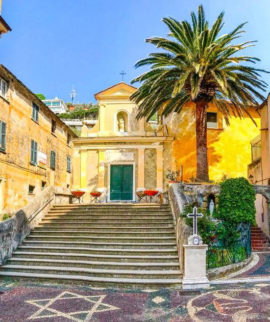 une petite paroisse construite en 1730 à laquelle on accède, comme c’est souvent le cas ici, par un grand escalier qui se termine sur une mosaïque de galets de fleuve (le parvis polychrome du Levant ligure par excellence). Saint Jean-Baptiste, le patron de la ville, a beaucoup à faire pour réchauffer les âmes, mais entre un feu de joie et une fête, on peut encore apercevoir l’oratoire qui lui est consacré dans le centre historique.