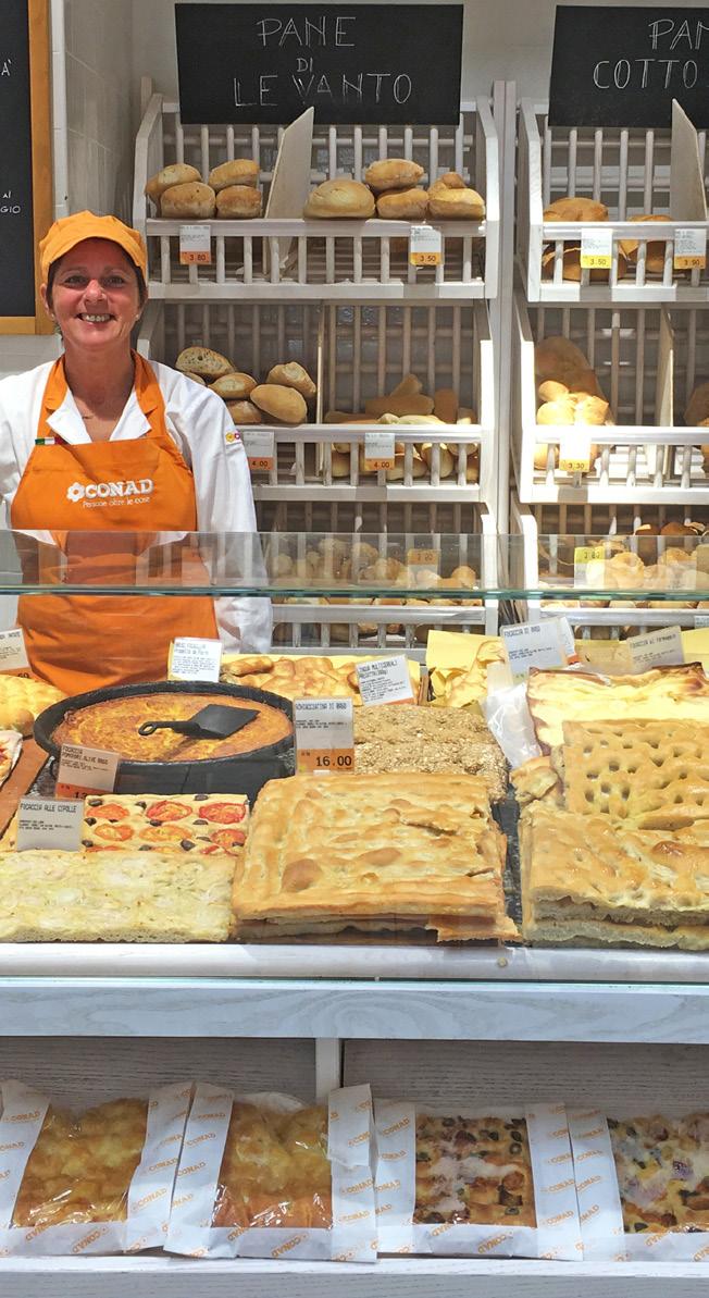 Prova le nostre specialità, preparate con ingredienti freschi, a lievitazione naturale e senza strutto: varie tipologie di pane, focaccia, farinata, torte salate, acciughe, verdure ripiene, dolci...