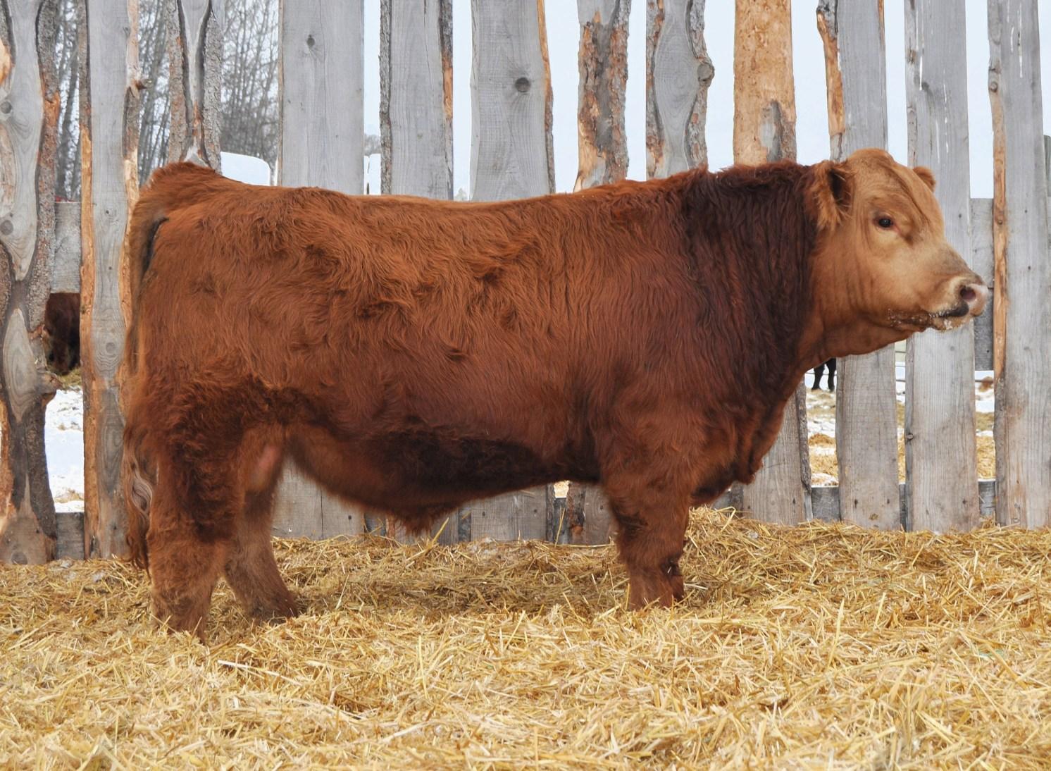 A real rugged type of a bull in Hercules. Long bodied, heavy haired, moderate framed, big hipped, the easy doing type. Backed by the Jane cow family and having Capitalist on the top side, expect this guys females to be great and steer calves even better. Polled/Scurred