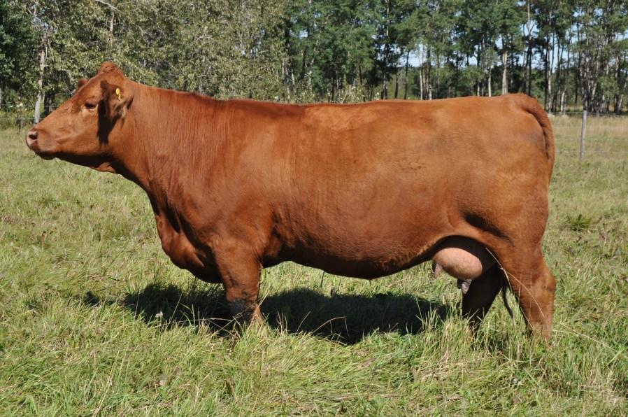 A purchase from the Meadow Acres Dispersal brings to us Mitas 17M. A dark red, heavy haired, clean fronted, long bodied bull with a twist in pedigree. MAF Dixie definitely hit it out of the park with her first calf. She’s a moderate framed cow with a very nice udder. She has calved again to another Copyright bull calf. Mitas is sure to make some great replacement females and even better steers.Polled/Scurred