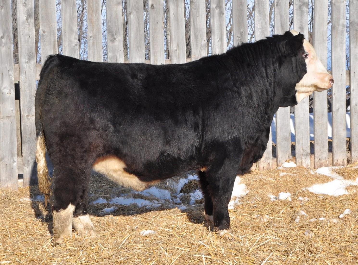 A State of War son that has balance, lots of middle, awesome temperament and very smooth through the front end. A top candidate for the heifer pen. Nitro’s dam is a very nice uddered female with exceptional calving. Going back to MAF Fancy 223E, 9M’s calves are sure to calve well and have the growth after. Homo Polled - Homo Black