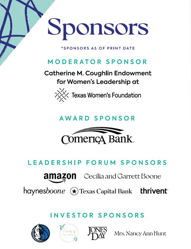 Thank you for being our Inspiration Board sponsor. Your investment in Texas women and girls by supporting our mission of advancing economic security and leadership opportunity is greatly appreciated.