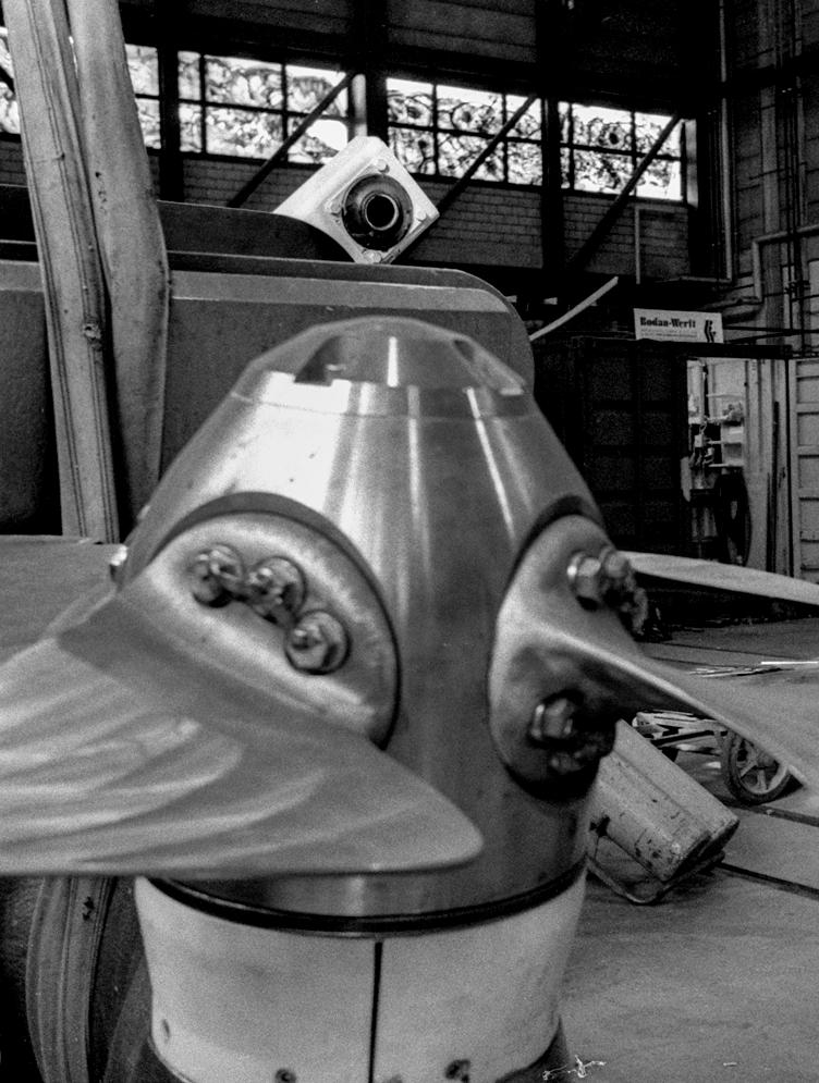 Auch die beiden Schiffspropeller federn erst in der Zürcher Werft eingepasst, zweimal zwei Tonnen rohe Kraft. Und wenn die Männer nicht gerade Schiffen bauen, dann putzen sie.