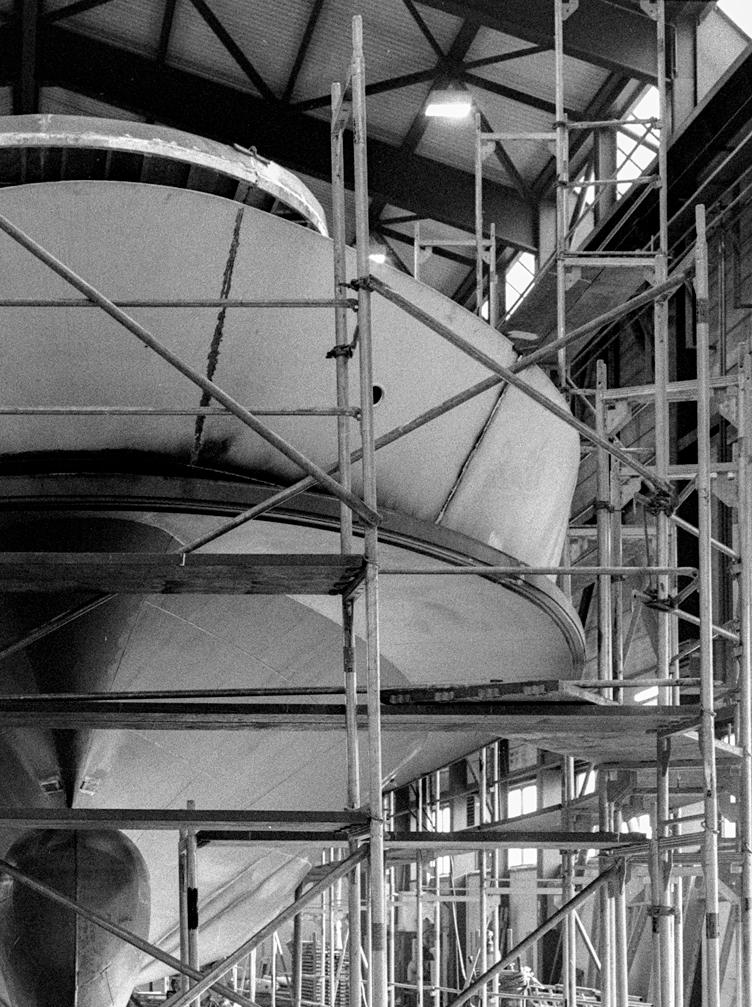 Was dereinst als mittelgrosses Schiff für 300 Passagiere auf dem Zürichsee Rundkurse fahren soll, nimmt in der werft von Wollishofen schon fast gigantisch aus. Zweiundvierzig Meter lang misst das Ungetüm aus Aluminium und Stahl. Fast siebeneinhalb Meter breit wird es 186 Tonnen Zürichseewasser verdrängen und mit einer Geschwindigkeit von 23 Kilometer pro Stunde die Strecke Zürich - Rapperswil - Zürich zurücklegen.