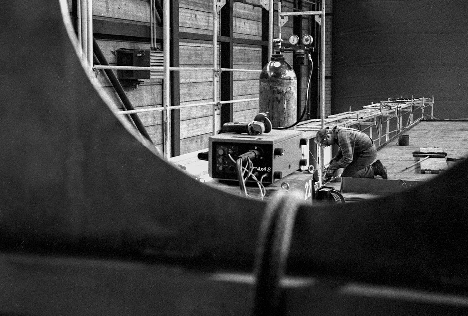 Michael Finkenzeller und seine Mannschaft baue bis dahin täglich weiter am Schiff - Werkalltag am See.