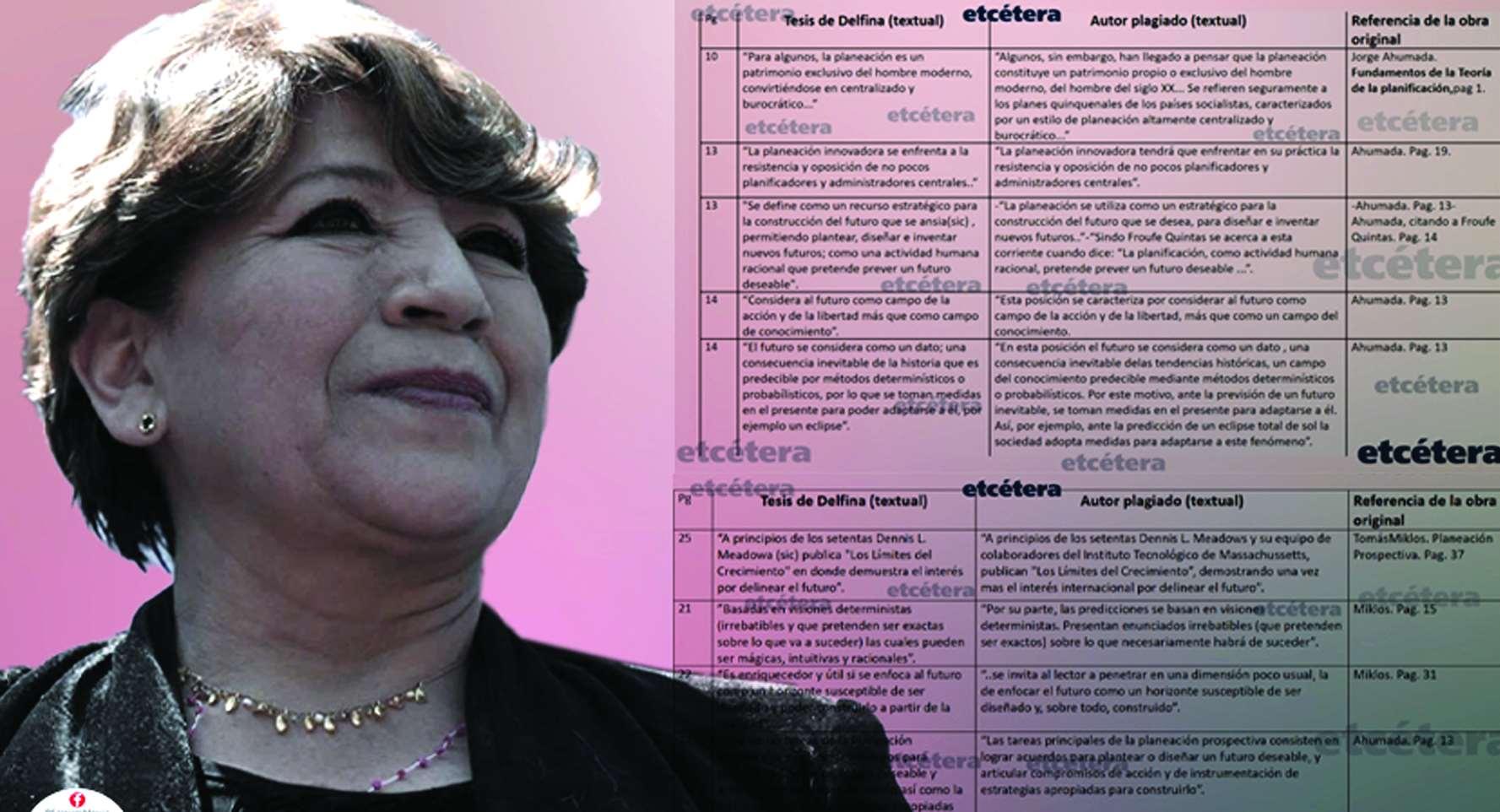 La candidata de Morena,PT y PVEM a la gubernatura del Estado de México, Delfina Gómez, pudo haber cometidovariosplagios en susproyectosde investigación para obtener el grado de licenciatura y dos maestrías.