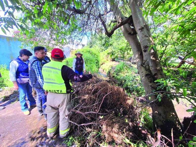 LñíadelequipodeProtecciónCivily ObrasPúblicas,realizóunavisitaala delegaciónSanFranciscoZentlalpanpara evaluarlasafectacionesocasionadasporla caídadeunárbolqueobstruyóelafluente del"RíodeZentlalpan".