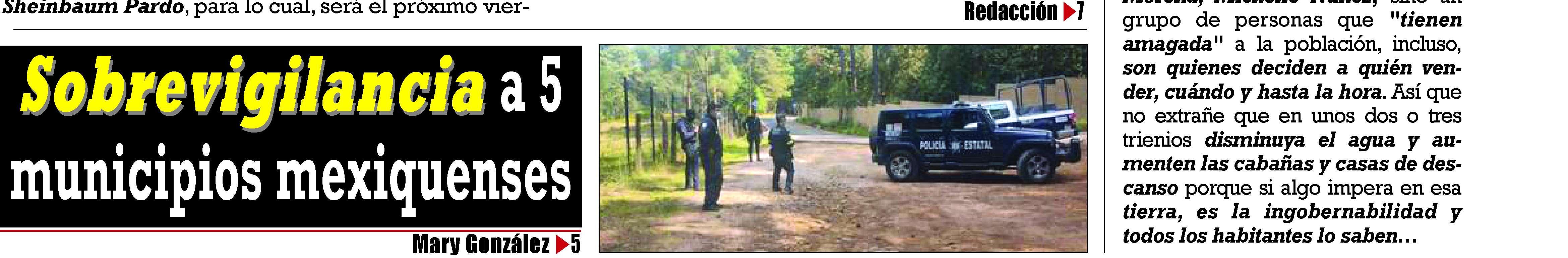 La policía estatal reforzará la seguridad en los municipiosde CoatepecHarinas, Tlatlaya, Aculco y Acambay, mientras que la Marina y el Ejército tomarán el control del municipiode ValledeBravo.
