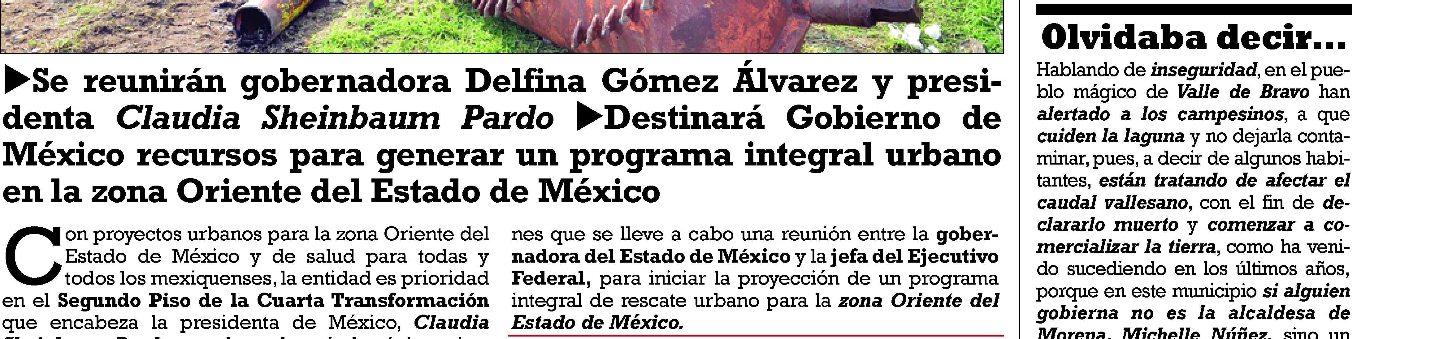 "Hoy en la #MañaneraDelPueblo,informó que el viernes tendremos una reunión para iniciar la proyección de un programa integral de rescate urbano para la Zona Oriente del #EstadoDeMéxico.#EsTiempoDeMujeres y #JuntasTrabajamosparaLa4T", compartió la GobernadoraDelfinaGómezÁlvarez a través de sus redes sociales.
