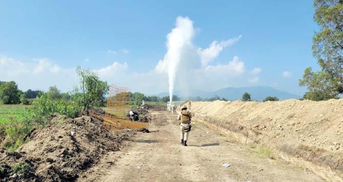 En el municipio de Otumba, Estado de México ,localizaron una toma clandestina de hidrocarburo que provocó una enorme fuga. Luego de unas horas,por la tarde de este jueves,la zona fue resguardada por elementos de la Guardia Nacional,donde el personal de Pemex logró controlar la salida del combustible. De acuerdo con reportes de los medios locales,la fuga alcanzó de 4 a 10 metros de altura. Los vecinos de la comunidad de Cuatlan cingo fueron quienes informaron sobre las acciones de huachicoleo en ductos de Petróleos Mexicanos en esta zona del territorio Personalmexiquense.deSeguridad física y bomberos del Estado de México confirmaron que del ducto Tuxpan-Azcapotzalco,a la altura del kilómetro 260+433,brotaba el combustible,por lo que de inmediato se implementó un cerco de seguridad. En tanto,los representantes de Pemex informaron que al pinchar el ducto,que permanecía descubierto,fue lo que originó que el hidrocarburo saliera a presión. Por ser una zona baldía no fue necesario evacuar a los vecinos y tampoco hubo registro de personas lesionadas,así como tampoco detención de los responsables.
