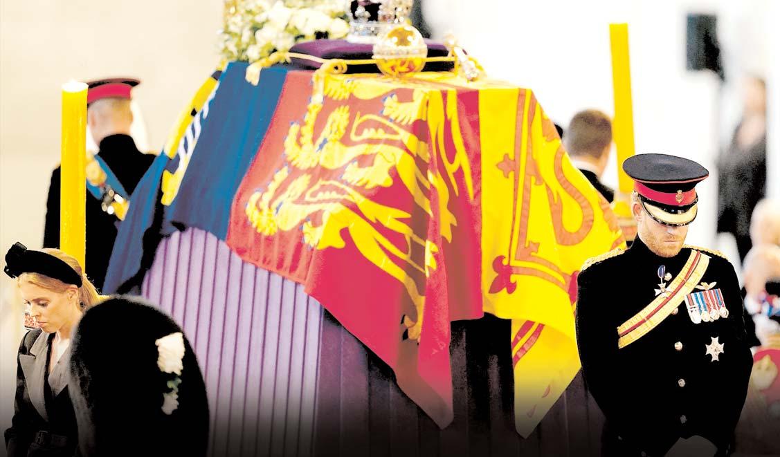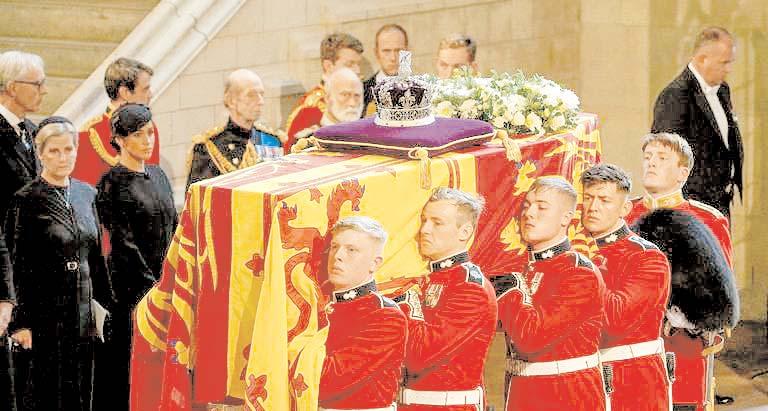 Gran Bretaña despide de esta manera a su reina Isabel II que estuvo en el trono durante 70 años Según información proporcionada por fuentes cercanas al Palacio Real,la ceremonia luctuosa iniciará de manera muy íntima.Más tarde el ataúd viajará en procesión a la Abadía de Westminster para el funeral de Estado.Se espera que allí lleguen jefes de Estado para unirse a los miembros de la familia real.