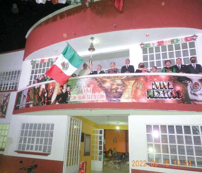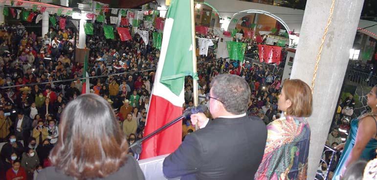 Bandera Nacional, la alcaldesa Marisol Nava, dio el tradicional grito del inicio de la lucha por la Independencia de México,e hizo sonar la campana,recordando al cura Miguel Hidalgo,de aquel lejano Esto1810.sucedió en el centro de Juchitepec, con la plaza pública de la explanada municipal,abarrotada de sus conciudadanos, quienes;con sobrada alegría,tras dos años de no festejar estas fechas,por motivo de la pandemia por Covid-19; contestaron con los ¡¡Viva!!, ¡¡Viva!!, los nombres de los Héroes que nos dieron Patria y Libertad. Cabe destacar que el día 16 de septiembre,luego que la presidenta municipal culminó su recorrido en calles y avenidas de este desfile,recibió los contingentes participantes de las escuelas,asociaciones civiles,organismos descentralizados como el DIF y el de agua potable,personal de su administración,y ciudadanía en general, que también desfiló junto a sus autoridades,culminando con kermes,concursos y baile musical como la noche anterior.