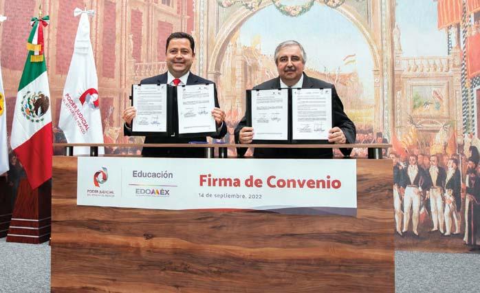 l Poder Judicial del Estado de México y la Secretaría de Educación de la entidad,firmaron un Convenio de Colaboración que contempla la capacitación y certificación de 700 profesores y profesoras de todo el territorio mexiquense,como mediadores y conciliadores en materia escolar.