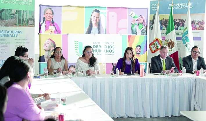 La presidenta de la Comisión de Derechos Humanos del Estado de México (CODHEM) Myrna Araceli García Morón y representantes de Colectivas Feministas llevaron a cabo la Reunión de Seguimiento de la Agenda Feminista; entre los acuerdos destacan las acciones contra el acoso y hostigamiento sexual en escuelas y la presentación delPronunciamientoparaexhortaralos125municipios a respetar y garantizar los derechos humanos de las mujeres que se manifiesten este 8 de Marzo paraconmemorarel Día Internacional dela Mujer. Alseñalarqueesteviernes8demarzodiversosgrupos de mujeres marcharán para exigir el respeto a sus derechos,García Morón comentó que la CODHEM se ha anticipado con acciones como la publicacióndelPronunciamiento;alrespecto,elSegundo Visitador General Juan Laredo Sánchez explicó que seexhortóalos125municipiosagarantizarlosderechos a la libertad de expresión y a la reunión,a travésde la protesta social pacífica.