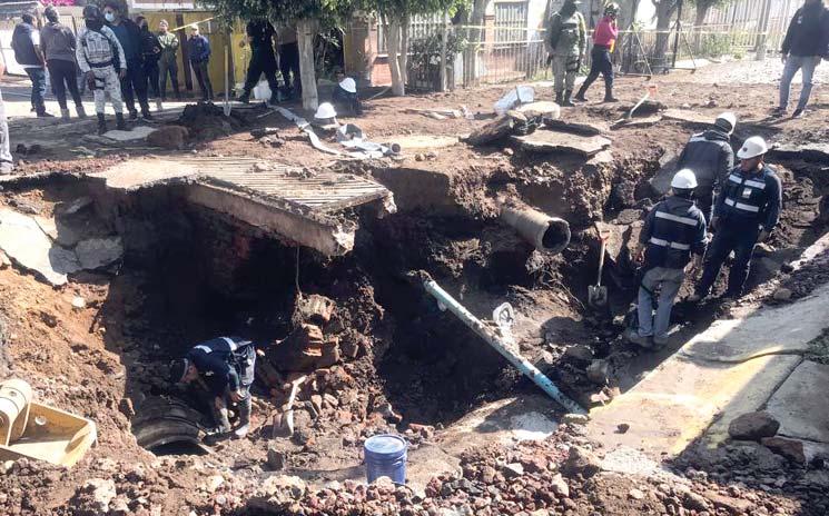 En la zona labora personal de CAEM y del organismo municipal con maquinaria pesada,para reparar los ductos,pero estas maniobras provocarán una disminución del líquido en Acolman, Coacalco, Ecatepec, Tecámac, Tultitlán y Nezahualcóyotl, de acuerdo a reportes de organismo estatal.