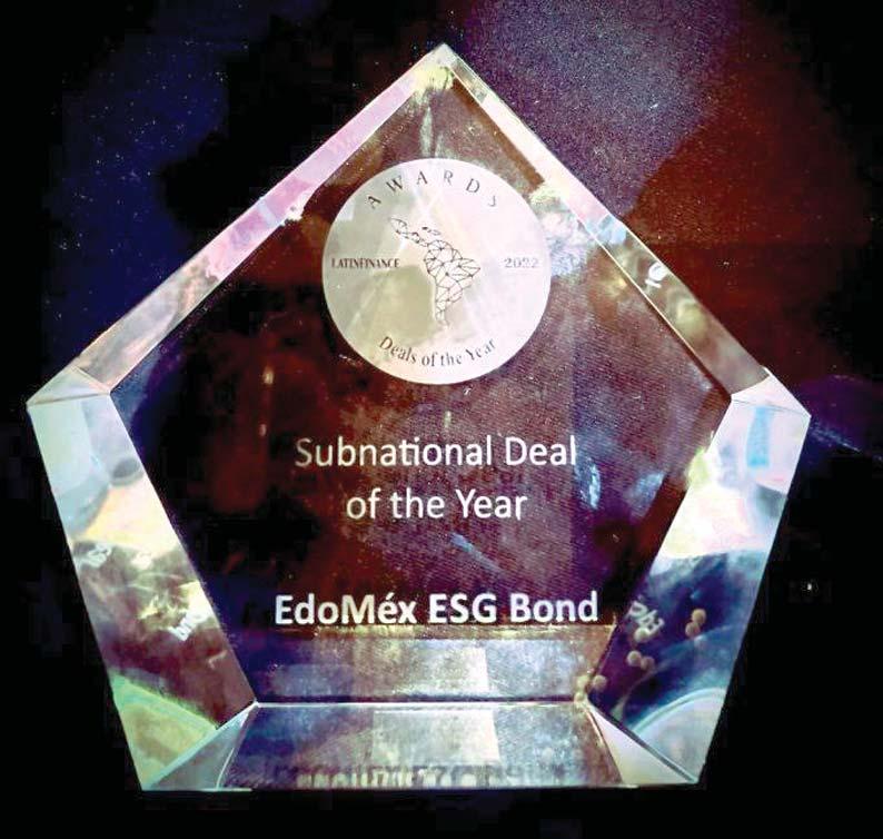 El Gobierno del Estado de México,a través de la Secretaría de Finanzas,informó que LatinFinance reconoció a esta entidad con el premio Subnational Deal of the Year 2022 por realizar la mejor Operación Finan ciera Subnacional de Latinoamérica con la emisión de un bono bursátil con responsabilidad ambiental y social (ESG, por sus siglas en inglés).