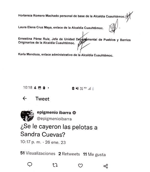 acompañados en los espectáculos por Alejandra Vargas y bajo la dirección de nuestro presidente editor, Naim Libien Kaui, coincidieron en señalar que la jefa de Gobierno no "perdona" a Cuevas el hecho de que haya ganado la alcaldía a la influyente Dolores Padierna Luna, esposa del exsecretario particular del entonces jefe de gobierno citadino, Andrés Manuel López Obrador, quien desde antes de las elecciones ya se sentía la triunfadora,además de que había sido delegada en Cuauhtémoc.