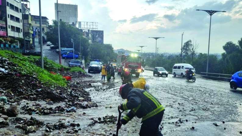 Usuarios de redes sociales compartieron imágenes de la avenida Insurgentes Norte inundada a la altura del Metrobús Indios Verdes, donde está suspendido el servicio y el paso de vehículos debido a que el agua alcanzó más de medio metro de altura. Amenos deunkilómetro,enlos límites de la Ciudad de México con Tlalnepantla, un deslizamiento de tierra y basura acumulada a un costado de la autopista obstruye al menos dos carriles del sentido de Ecatepec