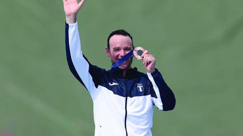 Lo hizo al conseguir la presea de bronce en foso masculino en la competenciadetirodelosJuegosOlímpicosParís2024luegode ganarse su clasficaciónaellatrasundesempatedisputadoentreseistiradoresenel