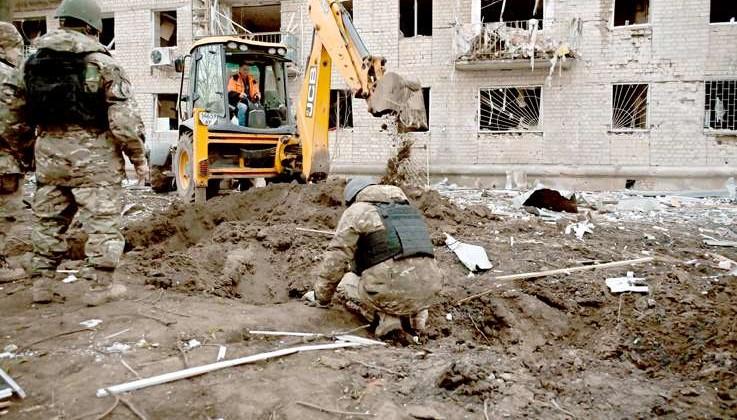 Fuentes cercanas al conflicto mencionan a Saldo aclarando que las fuerzas ucranianas atacaron primero la ciudad con una bomba guiada de fabricación francesa,y luego atacaron de nuevo con un misil HIMARS suministrado por Estados Unidos. De igual forma, Saldo añadió que las fuerzas ucranianas habían "vuelto a perpetrar el ataque de maneradeliberadaparacausarunmayornúmerodevíctimas"cuando"losresidentesdelas casas cercanas corrieron a ayudar a los heridos".