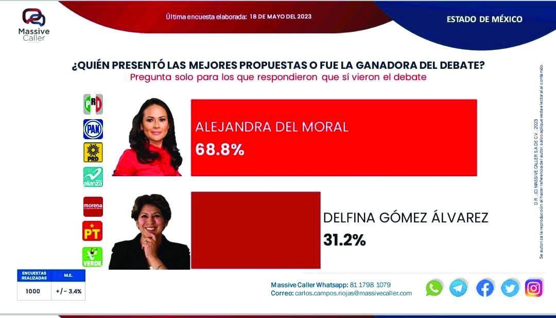 de los estadosmásimportantes de México. Una de las molestias durante el segundo debate, se dio cuando la expresidenta municipal de Cuautitlán Izcalli, Alejandra del Moral, reviró a suadversaria Delfina Gómez aldecirle: "enójate con quien te dice mentiras… ya te alcancé y te voy a ganar".