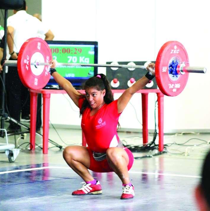 Fueen la categoría delos64kilogramos que la halterista nacional se mostró dominante, pues además del metal máximo ganado por una envión de 124 kg,también se colgó dos preseasde bronce,gracias a un arranque de 97 kg y un total de 221 kg.