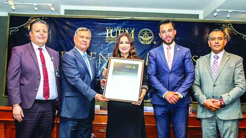 Ante el rector de la Universidad IUEM, Mario Luis Pérez Méndez; el presidente de la