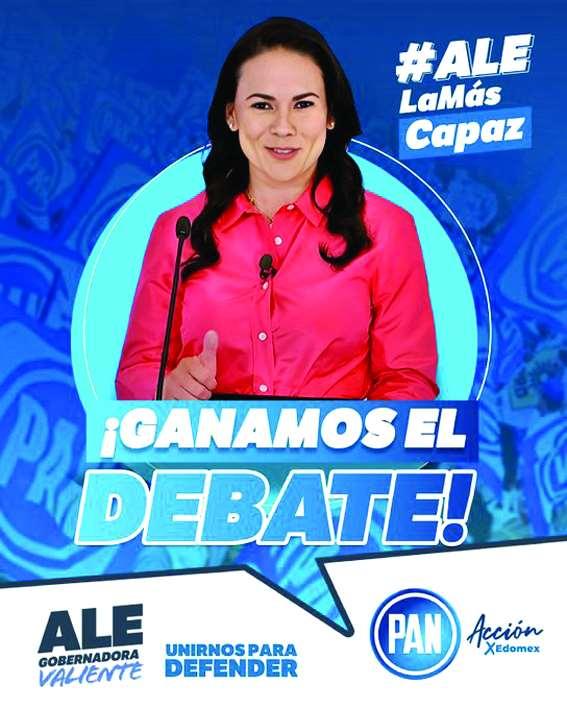 Aldejarenclaroqueelprimergobiernodecoalición que encabezará al frente del Estado de México dará resultados, la candidata de la coalición PRI, PAN,PRDyNuevaAlianza,Alejandra Del Moral Vela, se posicionó como la ganadora del primer debate rumbo a la gubernatura mexiquense.