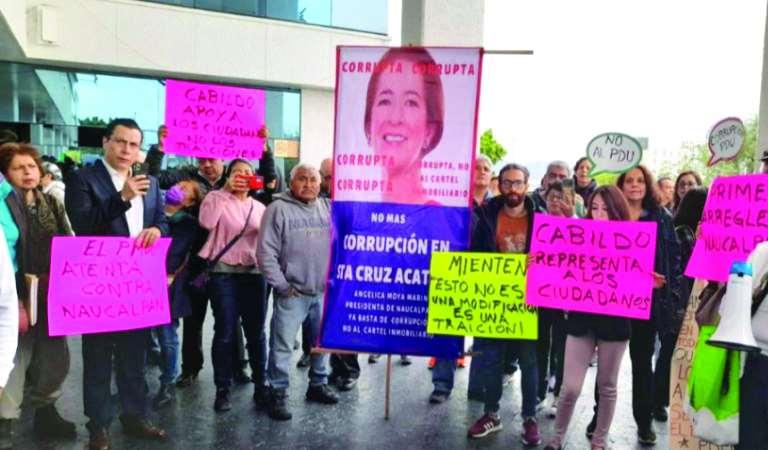 entre otros graves problemas urbanos. Recordó que, durante la sesión extraordinaria de Cabildo del Ayuntamiento de Naucalpan, mientras que vecinos protestaban afuera del palacio, se registraron siete votos a favor y siete en contra, por lo que la presidenta municipal, Angélica Moya hizo uso del llamado voto de calidad para aprobar el Plan de Desarrollo Urbano Municipal. "El pueblo necesitaba el voto en contra del