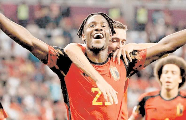 El croata Luka Modric y el marroquí Azz-Eddine,pugnan por el balón Michy Batshuayi festeja su gol del triunfo de Bélgica
