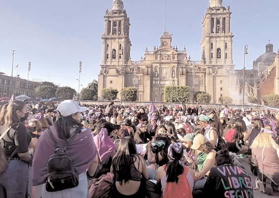 para protestar por un alto a la violencia. "¡Alerta,alerta,alerta feminista,que América Latina será toda feminista!" y "¡Señor,señora,no sea indiferente,se mata a las mujeres en la cara de la gente!", gritaron las manifestantes que avanzaron hacia al Zócalo capitalino.