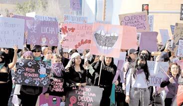 da de quienes fueron desaparecidos de manera forzosa,como el caso del hijo de María Teresa Molina,el que se replica un día y otro también,ello ante la indiferencia,ineficiencia e incluso,en algunos casos,de la complicidad de autoridades de los tres niveles de gobierno”. Tampoco hay duda de que Tamaulipas es una de entidades federativas donde se registra, sobre todo en Matamoros,Nuevo Laredo, Miguel Alemán,Reynosa y San Fernando,el mayor índice de violencia en todos sus rubros.Y Cambiando de Tema, desde el Paseo de la Reforma,vía zoom,nuestra experta en cultura,espectáculos y eventos especiales, Alejandra Vargas, reportó que miles de mujeres,la mayoría de ellas jóvenes,se manifestaban pacíficamente,con motivo del Día Internacional de la Mujer por diversas avenidas y monumentos de la ciudad capital,hechos que culminarán con una magna concentración en la explanada del Zócalo,donde habrá varias oradoras,entre ellas seguramente las activistas y luchadoras sociales Susi Cueto y Magda Reyes, quienes entrevistadas por nuestra también conductora destacaron la decisión de miles de féminas que salieron a las calles para hacer efectivo su derecho a la manifestación y exigir cesen todo tipo de agresiones contra el mal llamado "sexo débil", la desigualdad y la discriminación de que son objeto las mujeres,quienes,al igual que los hombres,merecen respeto y un trato justo y equitativo,así como oportunidades de superación.
