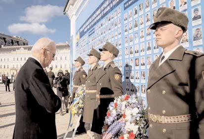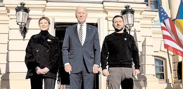 Joe Biden pasó más de cinco horas en la capital de Ucrania.Se reunió con Volodímir Zelenski en el Palacio Mariinsky, rindió homenaje a los soldados caídos del país y se entrevistó con el personal de la embajada estadounidense.