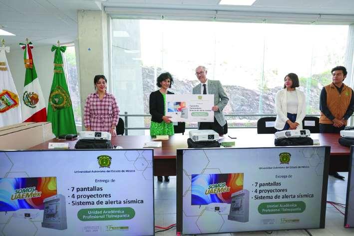 En tanto,en la Unidad Académica Profesional Tlalnepantla,donde se ofrecen las licenciaturas en Administración, Logística, Medios AlternosdeSolucióndeConflictosyNegocios Internacionales Bilingüe, el rector entregó sietepantallas,cuatroproyectoresyelsistema dealarmasísmica.