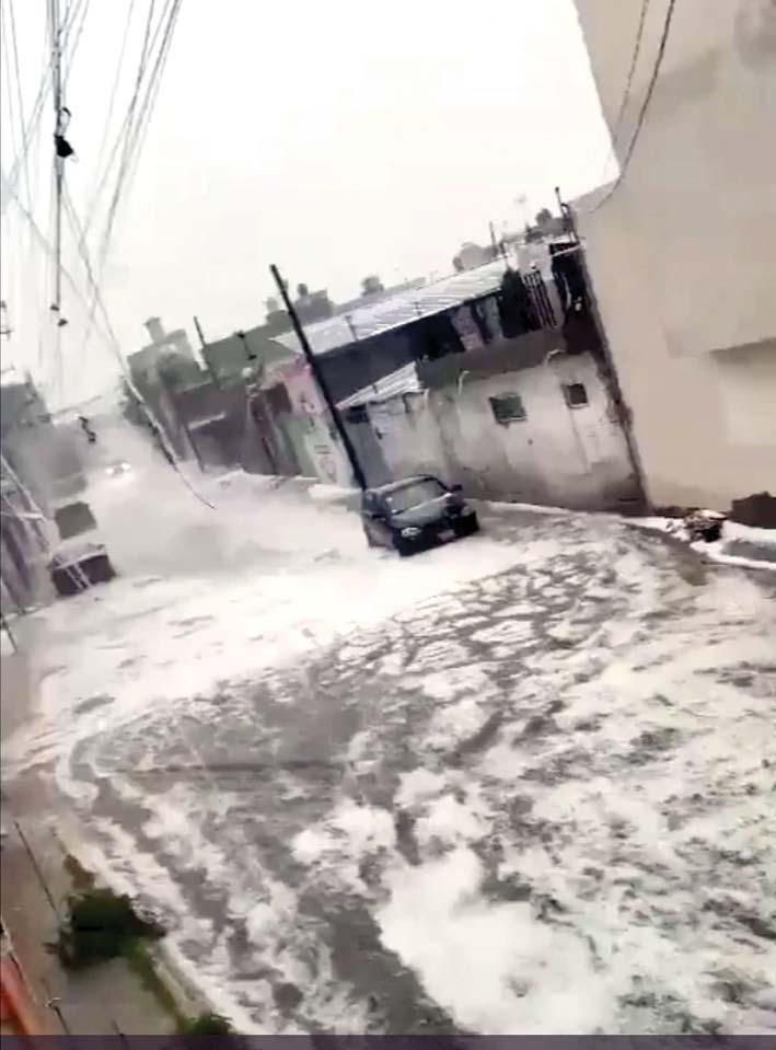 La tarde de ayer,una intensa lluvia acompañada de granizo cayó en el valle de Toluca afectando seriamente el sistema pluvial de la capital mexiquense,varias calles de quedaron cubiertas de "blanco",lo que provocó se saturarán las alcantarillas,impidiendo el tránsito vehicular en varios puntos. Se reportó que varios vehículos con sus ocupantes quedaron atrapados en puente deprimido de bulevar Solidaridad Las Torres y Jesús Carranza, a un costado de la Cruz Roja de Toluca, por lo que debieron ser auxiliados por cuerpos de rescate. De acuerdo con las autoridades,el monzón mexicano continuará generando lluvias puntuales muy fuertes con posibles granizadas, todas acompañadas con descargas eléctricas.