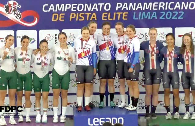 Acevedo.En esta prueba el campeón panamericano fue Canadá;el bronce quedó para las representantes de los Estados Unidos de América. Para cerrar la jornada en el velódromo de la VIDENA,los mexicanos Ricardo Peña Salas,Tomás Aguirre Garza,Edibaldo Maldonado Rayas y José Ramón Muñiz, ganaron el duelo por la medalla de bronce en la prueba de persecución por equipos.El cuadro de honor lo complementó Canadá,con el oro,y Colombia,plata. Las olímpicas en Tokio 2020 Luz Daniela Gaxiola González y Yuli Paola Verdugo Osuna,se instalaron en la ronda de semifinales de la velocidad individual, prueba que definirá a las más veloces del continente,hoy cuando se realice la final y donde México buscará estar en el podio.
