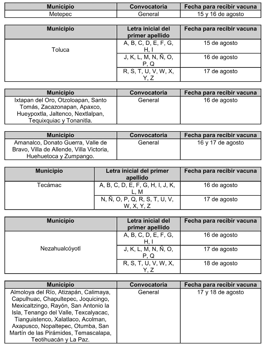 La aplicación de la primera dosis de vacuna contra Covid-19 a niñas y niños con ocho años cumplidos o que los cumplan en lo que resta de 2022 se realizará del lunes 15 al viernes 19 de agosto en 98 municipios mexiquenses.