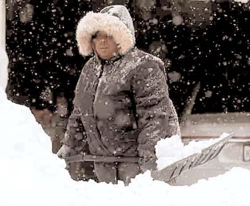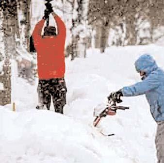 Las nevadas han provocado que las personas caminen con equipo especial para la nieve