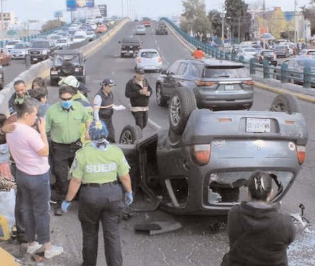 Un automóvil se volcó sobre Paseo To-llocan, a la altura de la clínica del IMSS 220, en la ciudad de Toluca.