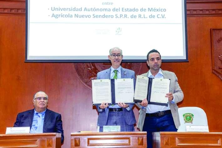 LafirmadelconveniogeneraldecolaboracióndelaUniversidadAutónomadel EstadodeMéxico(UAEMéx)ylaasociacióncivilAgrícolaNuevoSenderoASPROS auguraunasinergiademutuobeneficioen materiadeinvestigación,capacitaciónydesarrollo,conlapremisadebeneficiaralasfamiliasdeloscampesinosmexicanosyfortalecerla autosuficienciaalimentariaennuestroentorno, sostuvoelrectordeestacasadeestudios,Carlos EduardoBarreraDíaz.